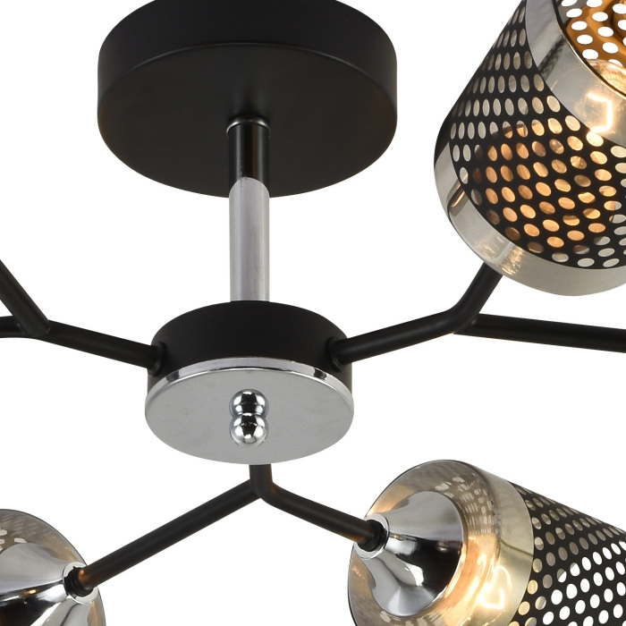 Для создания яркого освещения в светильнике предусмотрены лампочки в количестве 6 шт. с цоколем E27 и общей мощностью 360 Вт., благодаря чему обеспечивается яркое освещение для помещений площадью до 18 кв.м.