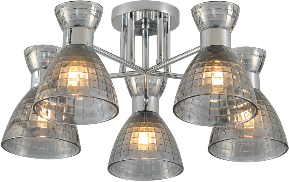 Корпус потолочной люстры изготовлен из высококачественного металла, что добавляет ей прочности и долговечности. Плафон в дымчатом цвете придаёт модели лёгкости, изысканности и завершенности, благодаря чему люстра станет настоящим украшением вашего интерьера.