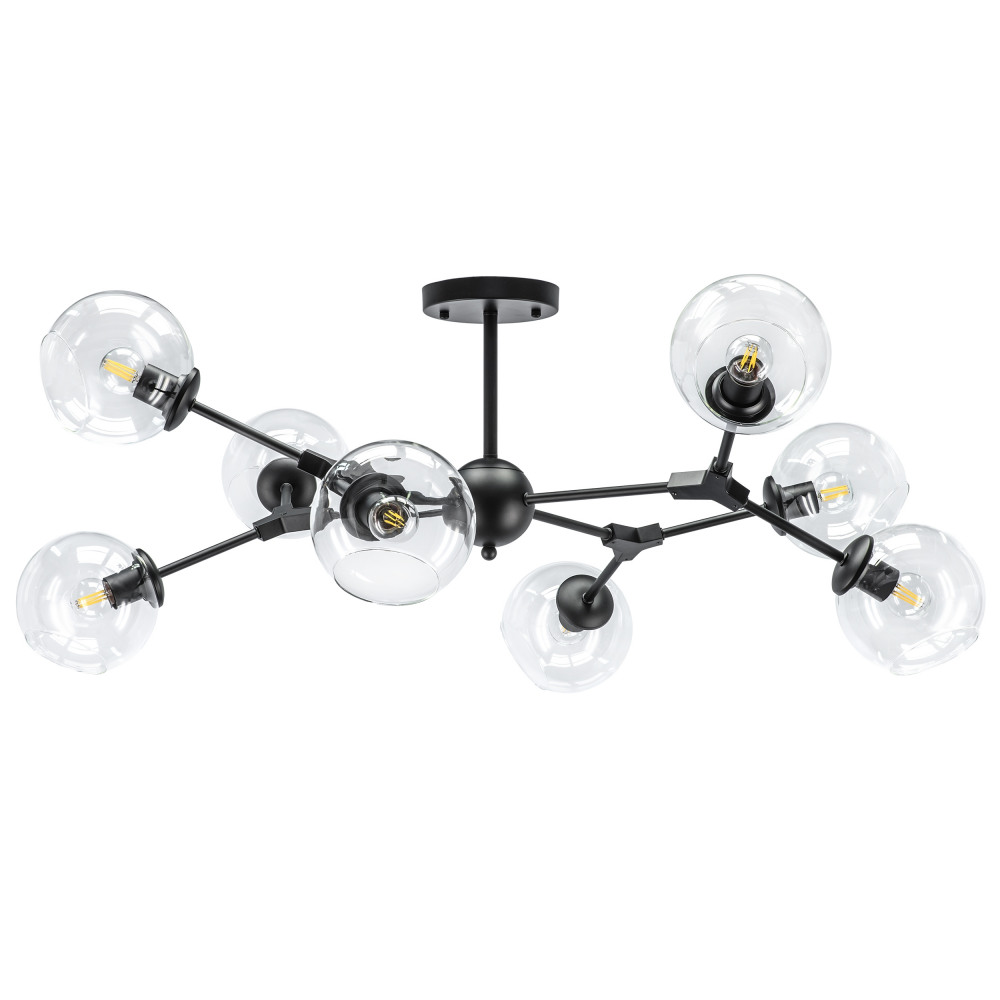 Каркас потолочной люстры выполнен из высококачественного металла, что добавляет ей прочности и долговечности. Плафон в прозрачном цвете придаёт модели лёгкости, изысканности и завершенности, благодаря чему люстра станет настоящим украшением вашего интерьера.