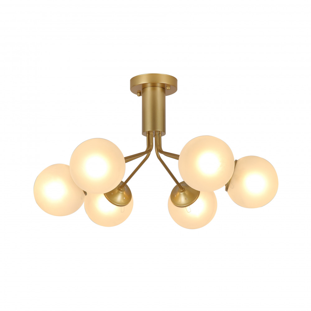 Для создания яркого освещения в светильнике предусмотрены лампочки в количестве 6 шт. с цоколем E27 и общей мощностью 360 Вт., благодаря чему обеспечивается яркое освещение для помещений площадью до 18 кв.м.