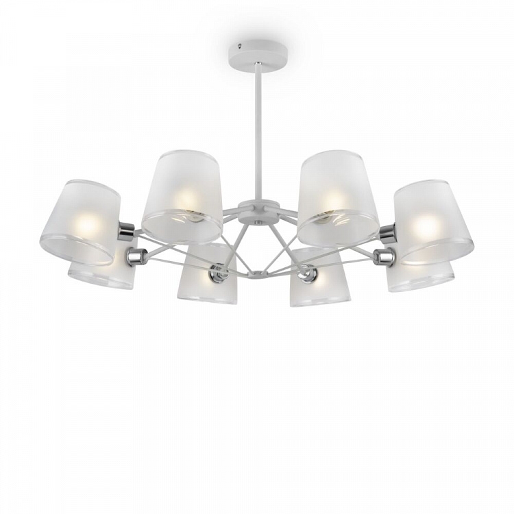 Каркас потолочной люстры сделан из прочного металла, что добавляет ей прочности и долговечности. Плафон в белом цвете придаёт модели лёгкости, изысканности и завершенности, благодаря чему люстра станет настоящим украшением вашего интерьера.