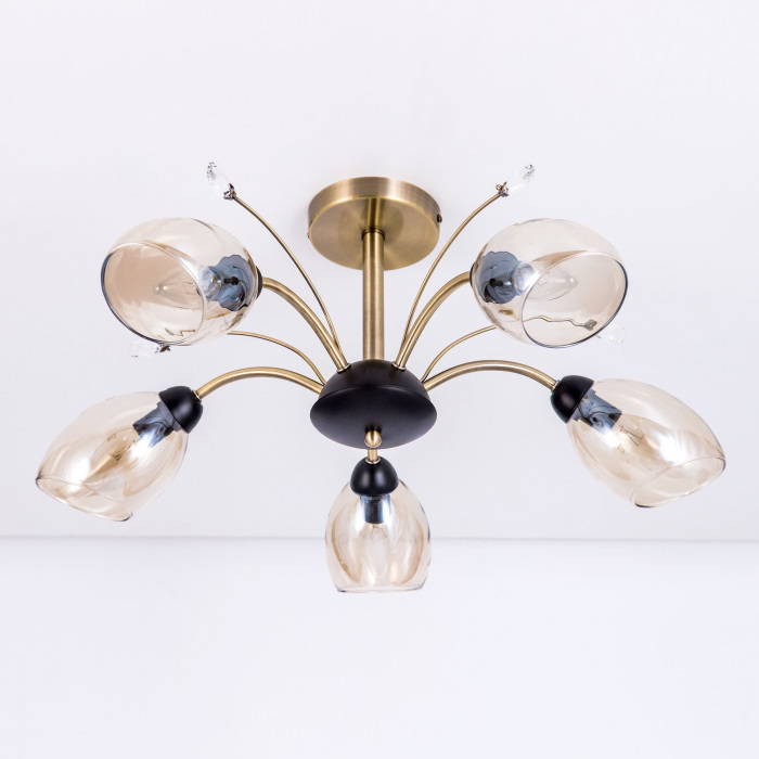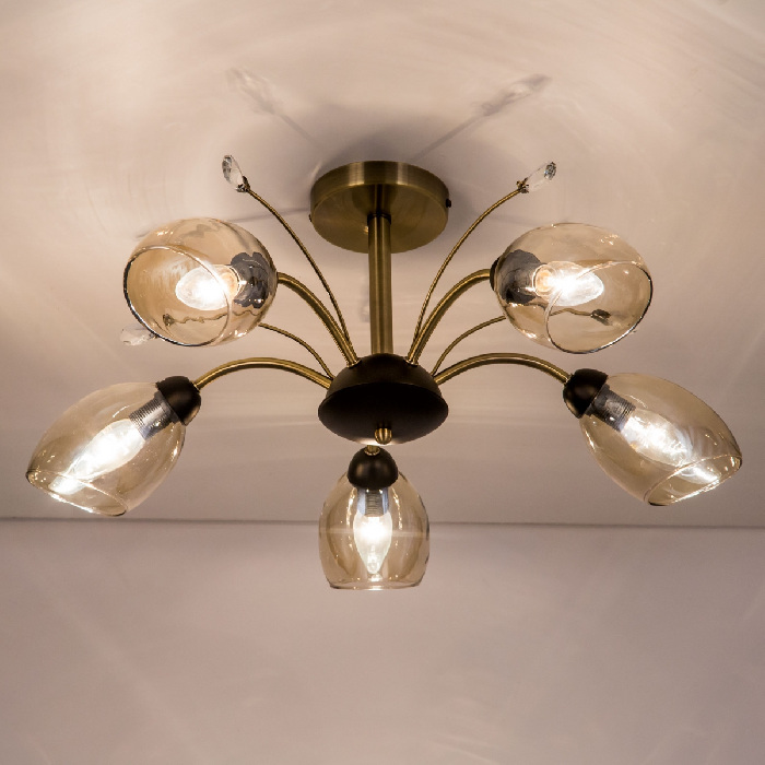 Для создания мягкого освещения в светильнике предусмотрены лампочки в количестве 5 шт. с цоколем E14 и общей мощностью 200 Вт., благодаря чему обеспечивается достаточное освещение для помещений площадью до 16 кв.м.