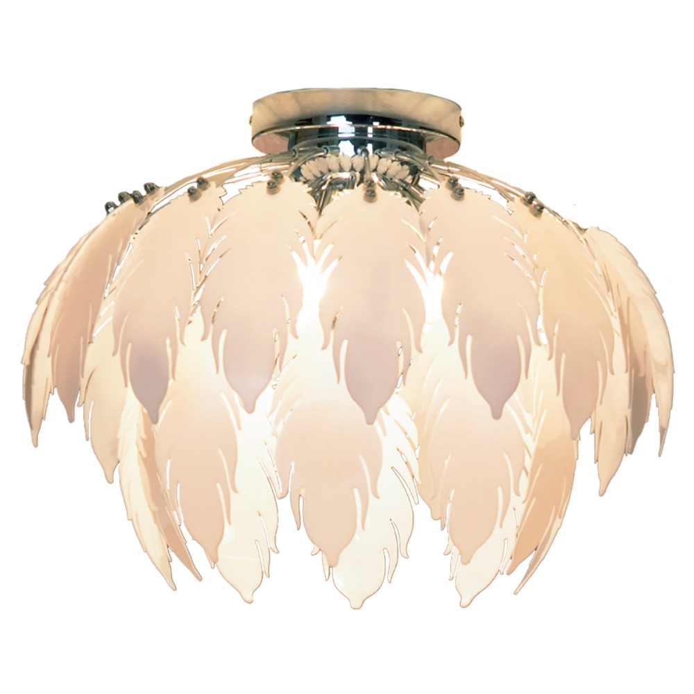 Корпус потолочной люстры создан из высококачественного металла, что добавляет ей прочности и долговечности. Плафон в белом цвете придаёт модели лёгкости, элегантности и завершенности, благодаря чему люстра станет настоящим украшением вашего интерьера.