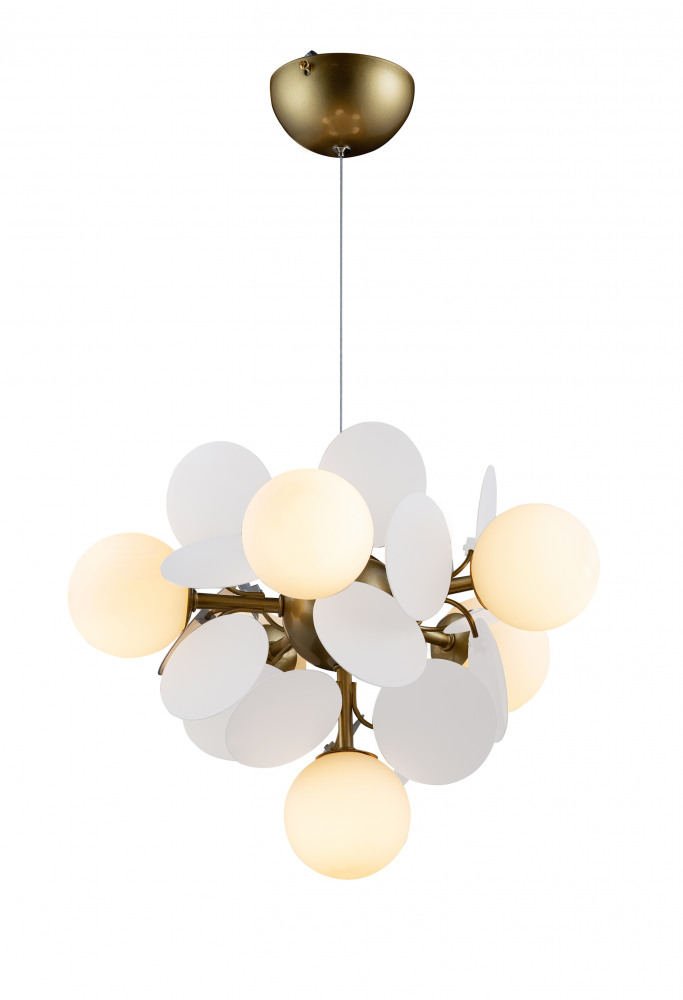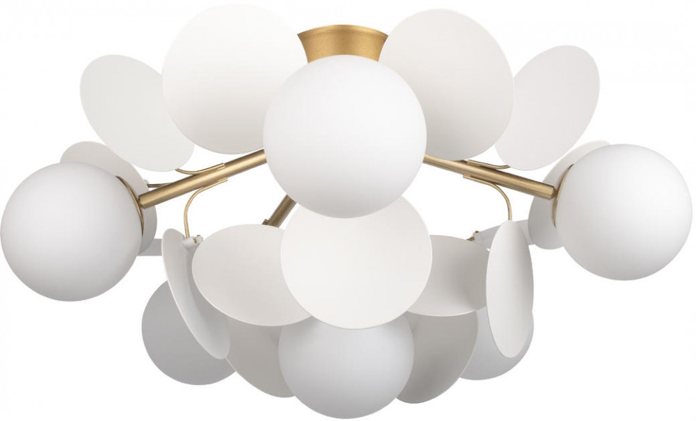 Корпус потолочной люстры создан из прочного металла, что добавляет ей прочности и долговечности. Плафон в белом цвете придаёт модели лёгкости, элегантности и завершенности, благодаря чему люстра станет настоящим украшением вашего интерьера.