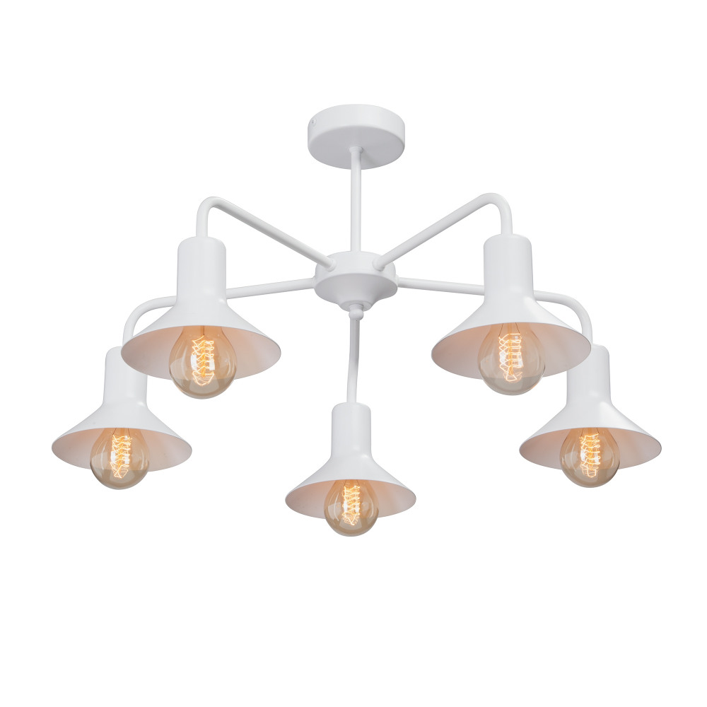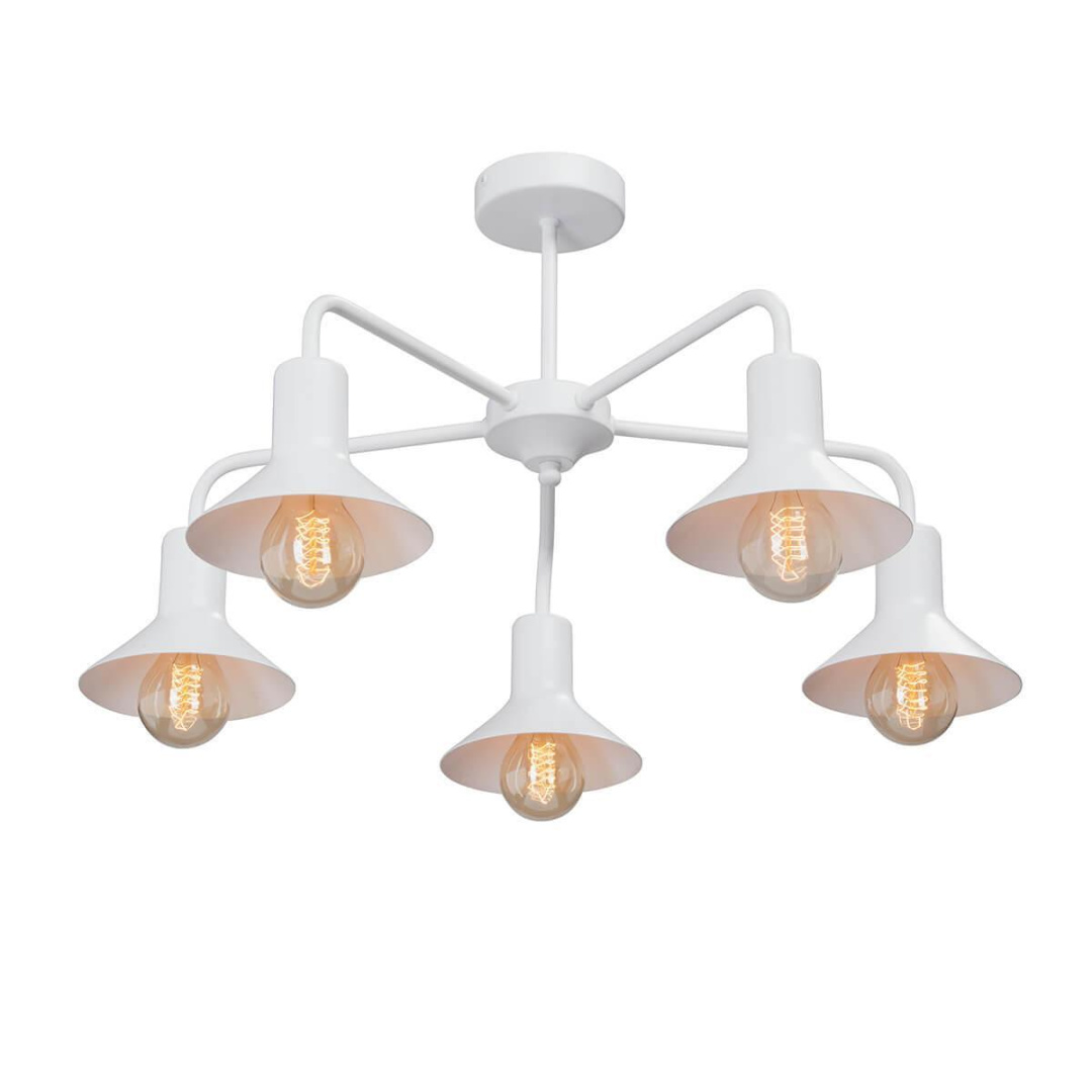 Каркас потолочной люстры выполнен из высококачественного металла, что добавляет ей прочности и долговечности. Плафон в белом цвете придаёт модели лёгкости, элегантности и завершенности, благодаря чему люстра станет настоящим украшением вашего интерьера.