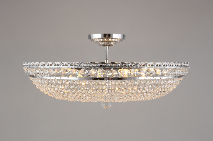 Корпус потолочной люстры создан из высококачественного стекла, что добавляет ей прочности и долговечности. Плафон в прозрачном цвете придаёт модели лёгкости, изысканности и завершенности, благодаря чему люстра станет настоящим украшением вашего интерьера.
