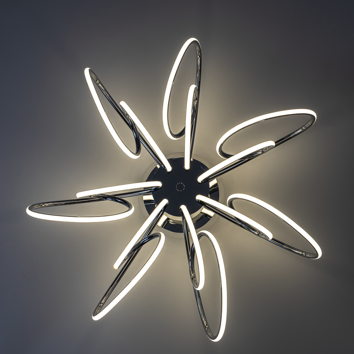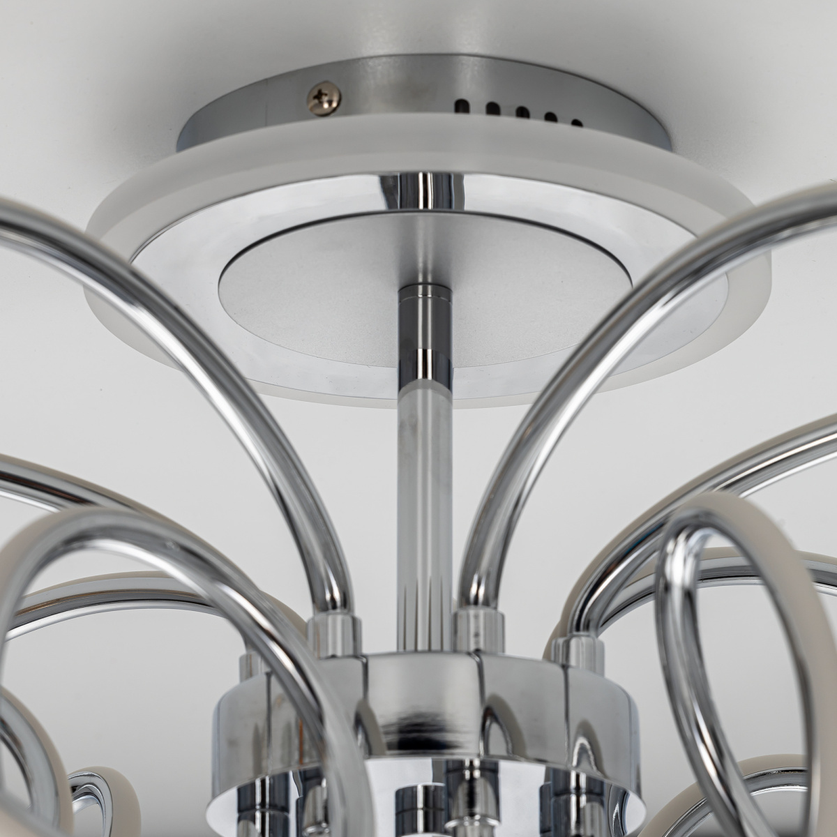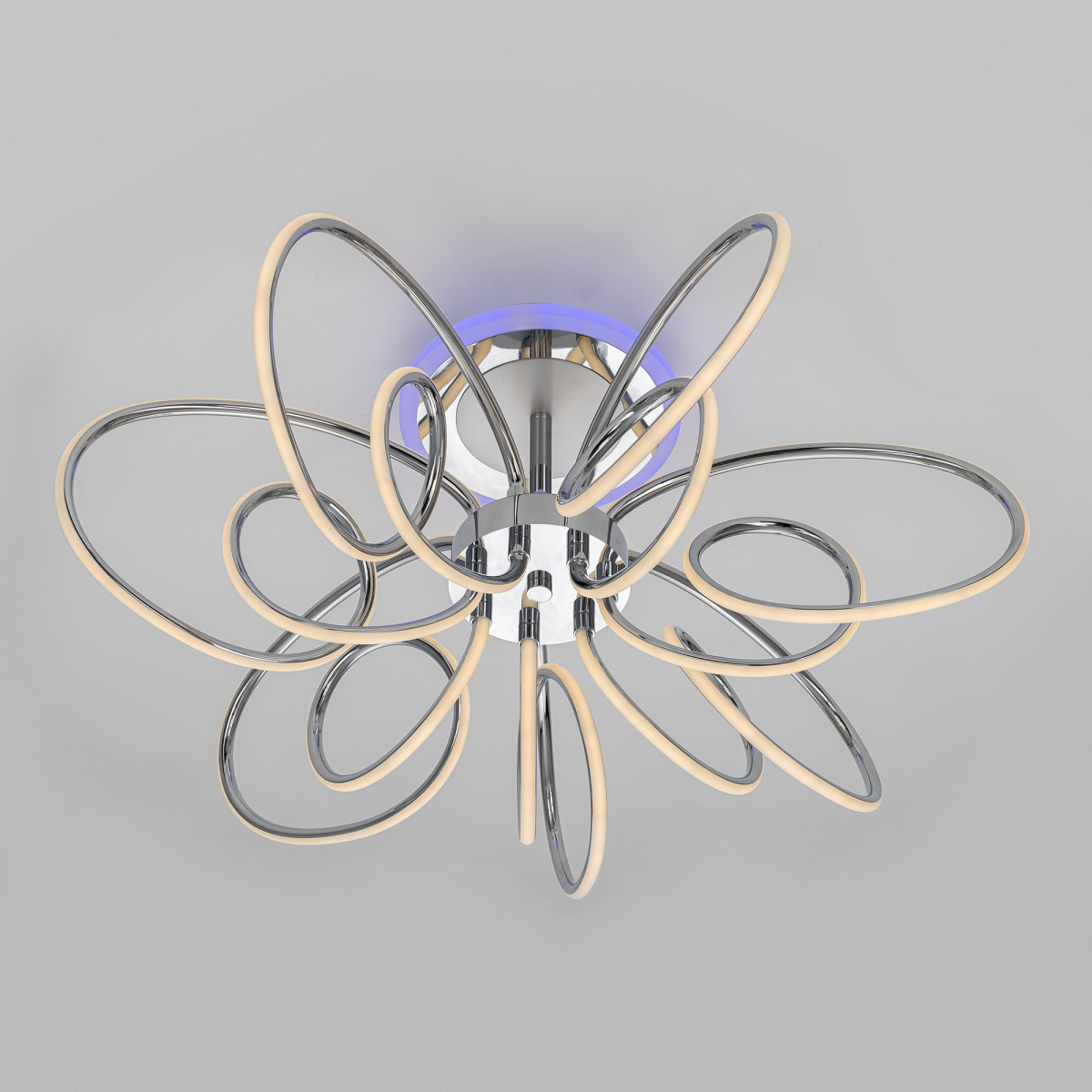 Независимая RGB‑подсветка основания с регулировкой яркости создаёт декор и уют, а управлять люстрой можно также через настенный выключатель.