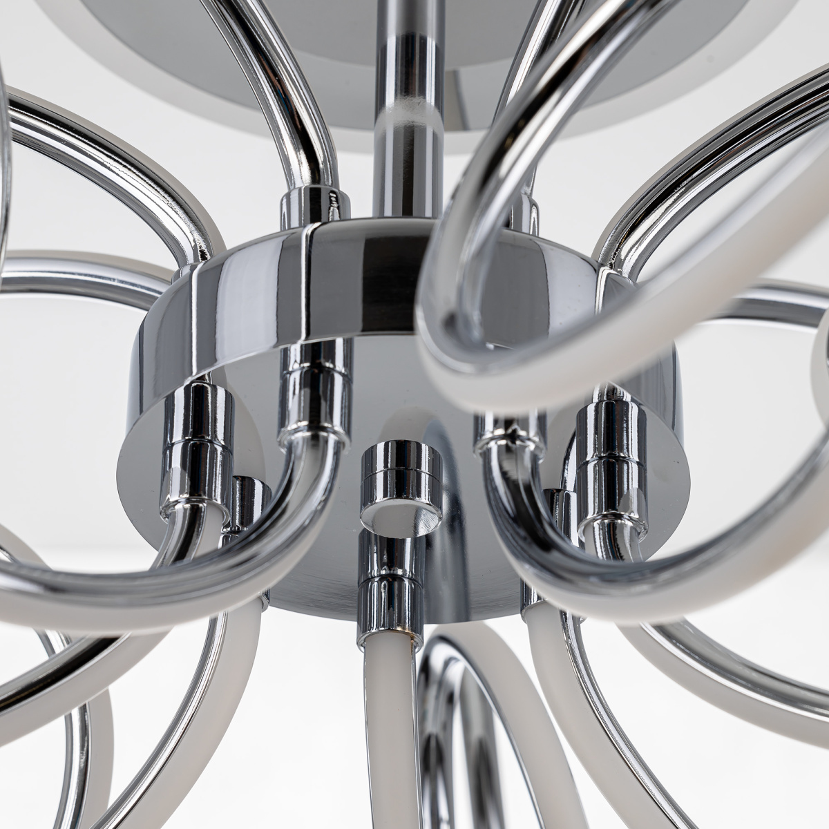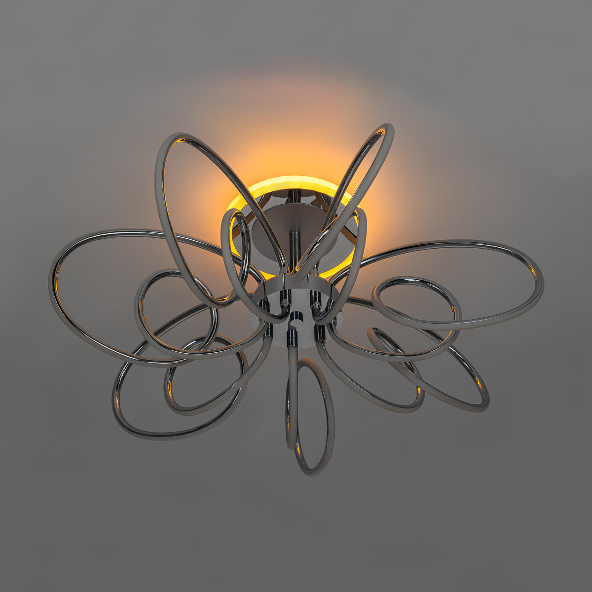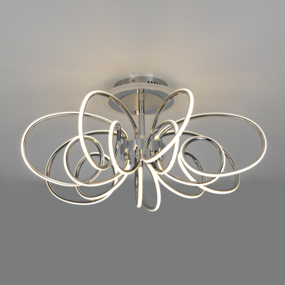 Независимая RGB‑подсветка основания с регулировкой яркости создаёт декор и уют, а управлять люстрой можно также через настенный выключатель.