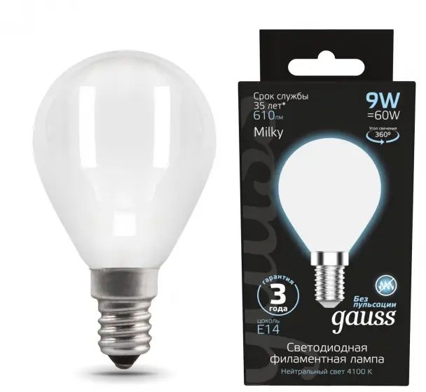 Лампочка светодиодная филаментная 105201209 Gauss и другие товары на нашем сайте можно купить в рассрочку на 6 или 9 месяцев без переплаты, а также оформить кредит от Сбербанка на 36 месяцев!