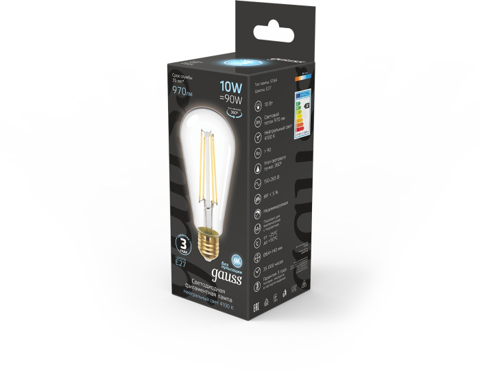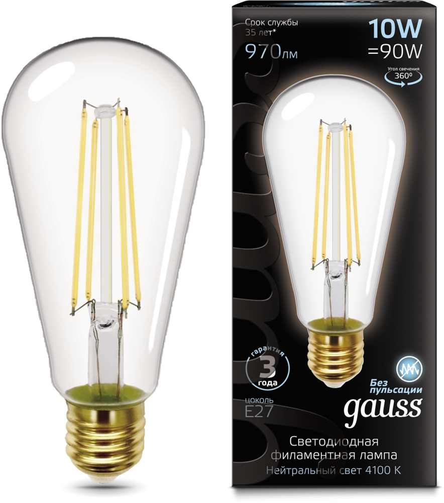 Лампочка светодиодная филаментная 157802210 Gauss 10Вт 4100K