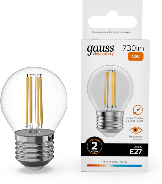 Лампочка светодиодная филаментная Filament Elementary 52212 Gauss, а также весь ассортимент товаров, представленный на сайте интернет-магазина ТопСвет.ру обладает фирменной гарантией производителя.
