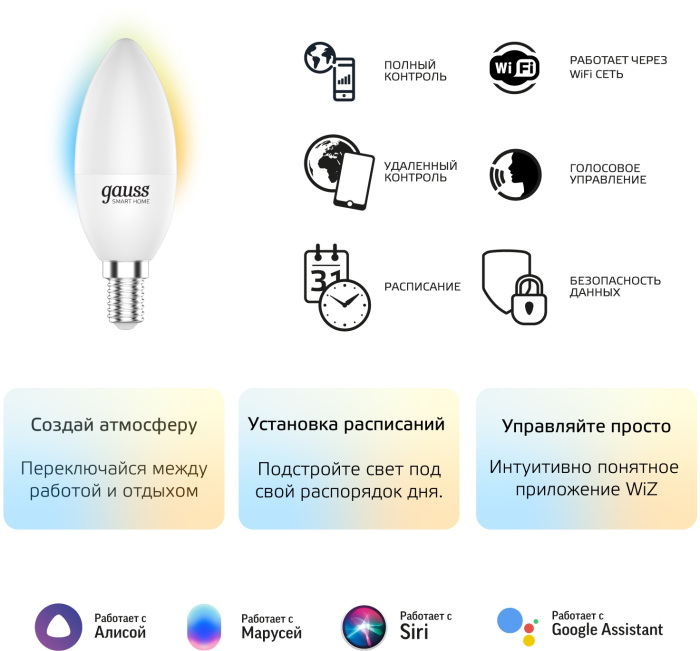 Лампочка светодиодная Smart Home 1110112 Gauss 5Вт 2700-6500K