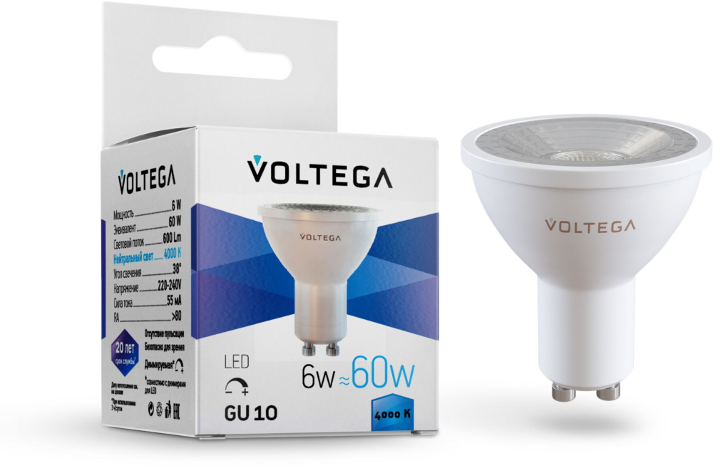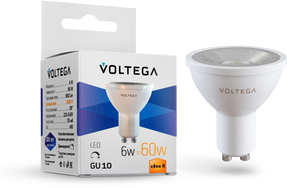 Лампочка светодиодная Sofit dim GU10 Lens 7251 Voltega, а также весь ассортимент товаров, представленный на сайте интернет-магазина ТопСвет.ру обладает фирменной гарантией производителя.