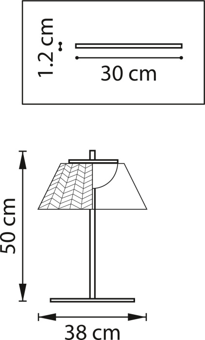 Размеры этой лампы – ширина 380 мм., высота 500 мм. Она идеально подойдёт для комнаты площадью до квадратных метров. Для создания необходимого освещения здесь использовано ламп с цоколем LED и общей мощностью 12 Вт.