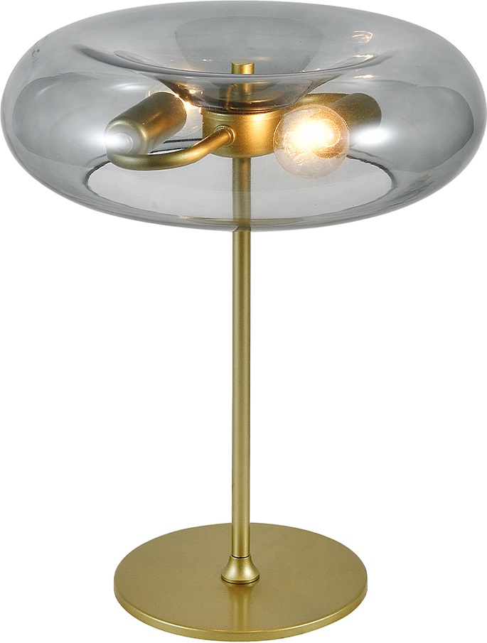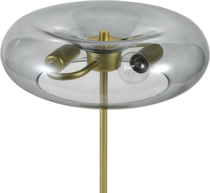 Корпус данной модели реализован из прочного металла, а его золотой цвет придаст вашему интерьеру гармоничности и теплоты. Плафон выполнен в дымчатом цвете, что придает модели легкости и изысканности.