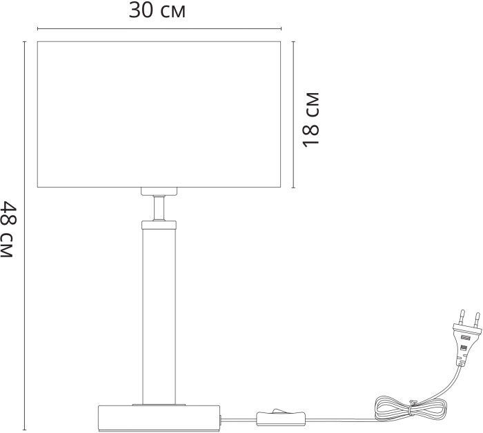 Размеры этой лампы – ширина 300 мм., высота 480 мм. Она идеально подойдёт для комнаты площадью до кв.метров. Для создания приятного освещения здесь использовано 1 ламп с цоколем E27 и общей мощностью 60 Вт.