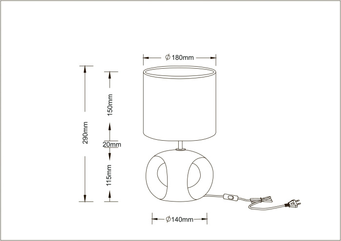 Размеры этой лампы – ширина 180 мм., высота 290 мм. Она идеально впишется для комнаты площадью до 1 кв.метров. Для создания подходящего освещения здесь использовано 1 ламп с цоколем E14 и общей мощностью 40 Вт.