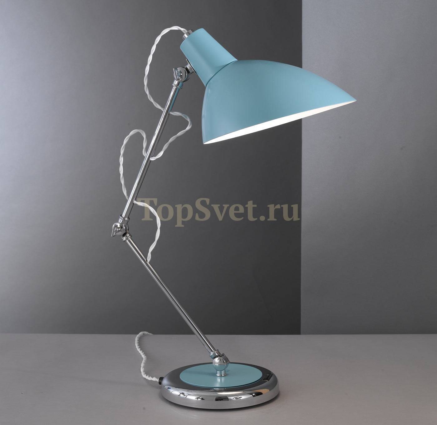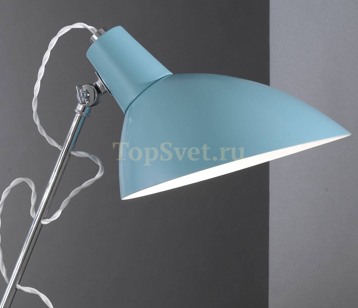 Каркас данной модели реализован из надёжного металла, а его никель/хром цвет придаст вашему интерьеру изысканности и теплоты. Плафон выполнен в голубе цвете, что придает модели легкости и гармоничности.