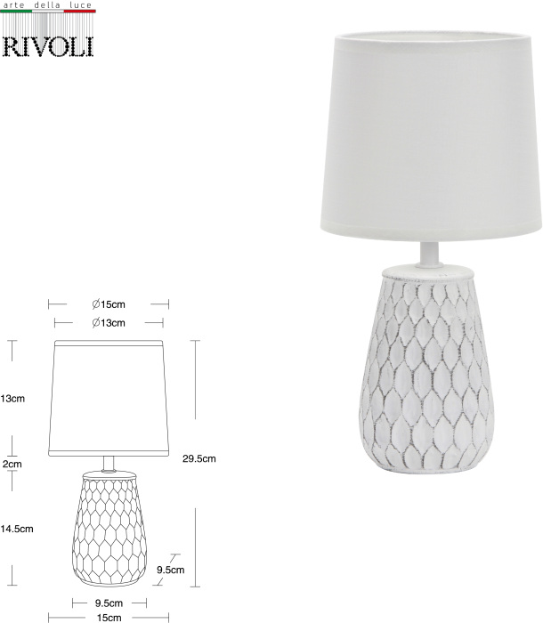 Итак, интерьерная настольная лампа Bertha 7071-502 Rivoli – это солидный и фирменный продукт от торговой марки Rivoli (Италия). Сочетание превосходного оформления и неповторимого мастерства делает его удачным выбором для вашего помещения или офиса.