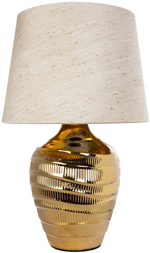 Корпус данной модели создан из качественного керамика, а его золото цвет придаст вашему интерьеру изысканности и теплоты. Плафон выполнен в бежевом цвете, что придает модели легкости и элегантности.