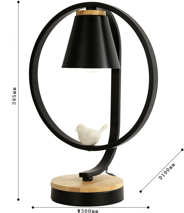 Размеры этой лампы – ширина 190 мм., высота 395 мм. Она идеально впишется для комнаты площадью до 2 кв.метров. Для создания приятного освещения здесь использовано 1 ламп с цоколем E27 и общей мощностью 40 Вт.