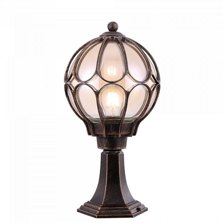 Особенностью этой модели является выдувной янтарный плафон, создающий теплый и уютный свет, напоминающий пламя свечи. Светильник оснащен стандартным цоколем E27, что позволяет использовать различные типы ламп мощностью до 100 Вт. Благодаря степени защиты IP65, он надежно защищен от пыли и струй воды, что делает его идеальным для использования на улице в любых погодных условиях.