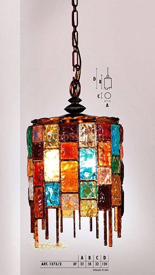 Корпус данной модели создан из надёжного металла, а его состарившая бронза цвет придаст вашему интерьеру гармоничности и теплоты. Плафон выполнен в разноцветном цвете, что придает модели легкости и изысканности.