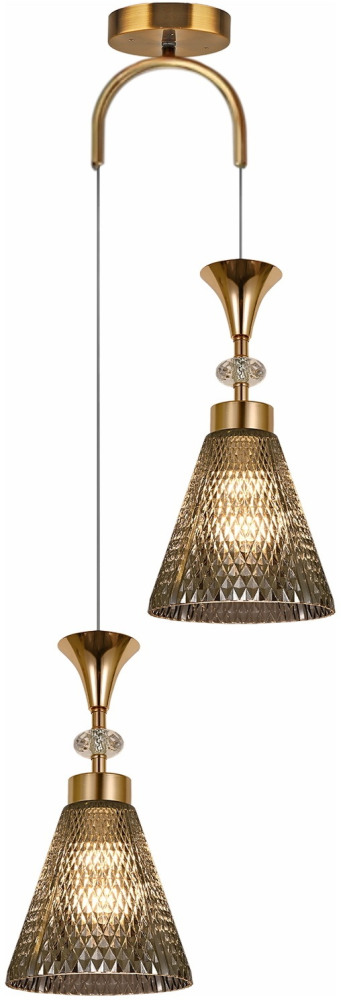 Каркас данной модели создан из надёжного металла, а его золотой цвет придаст вашему интерьеру гармоничности и теплоты. Плафон выполнен в дымчатом цвете, что придает модели легкости и элегантности.