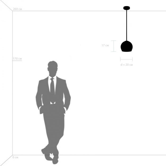 Размеры этого светильника – ширина 200 мм., высота 170 мм. Он идеально подойдёт для комнаты площадью до 2 кв.метров. Для создания необходимого освещения здесь использовано 1 ламп с цоколем E27 и общей мощностью 40 Вт.