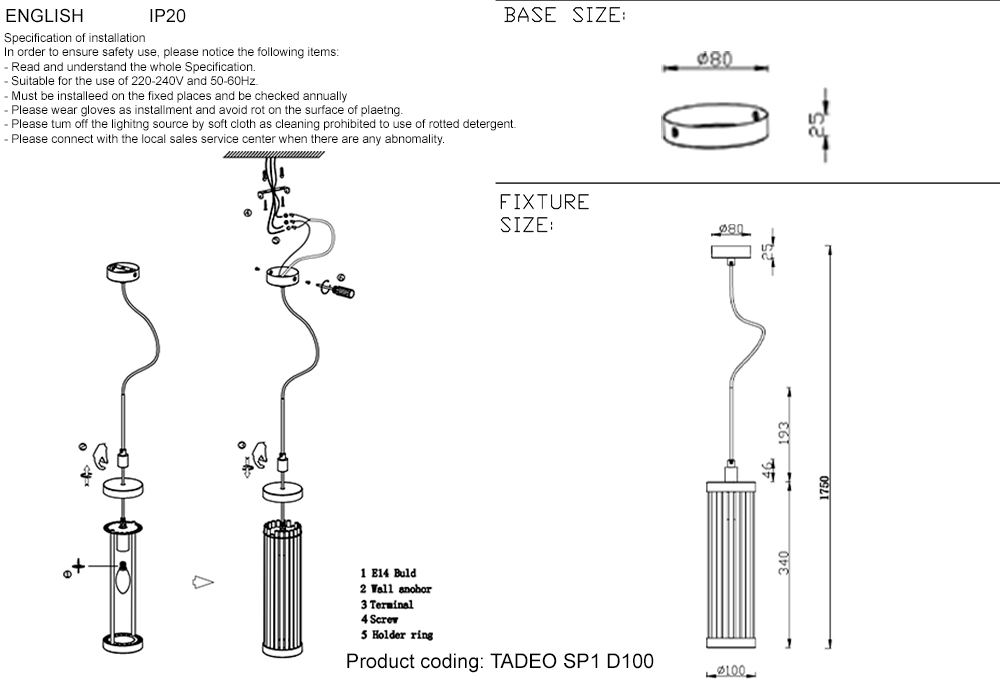 Светильник подвесной Crystal Lux TADEO SP1 D100 CHROME/TRANSPARENTE