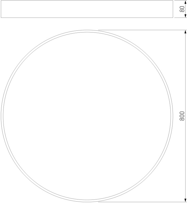 Размеры этого светильника – ширина мм., высота 80 мм. Он идеально впишется для комнаты площадью до 27 квадратных метров. Для создания подходящего освещения здесь использовано ламп с цоколем LED и общей мощностью 152 Вт.