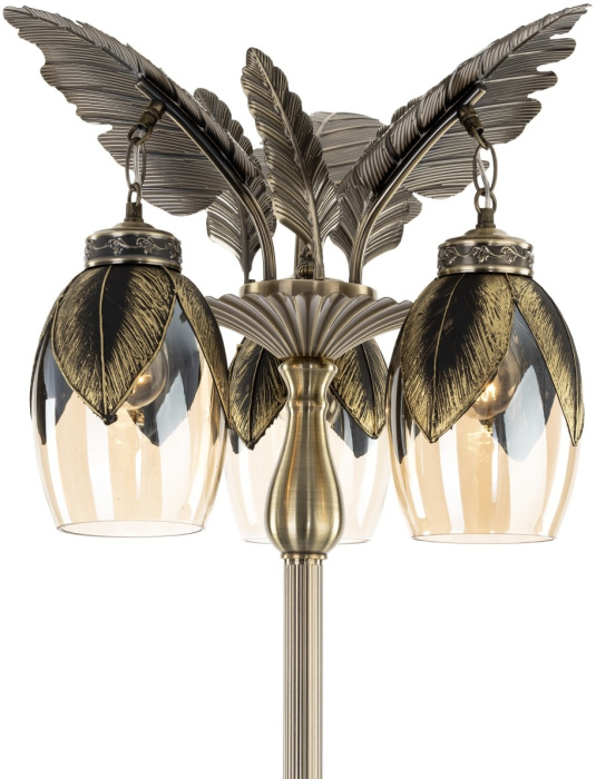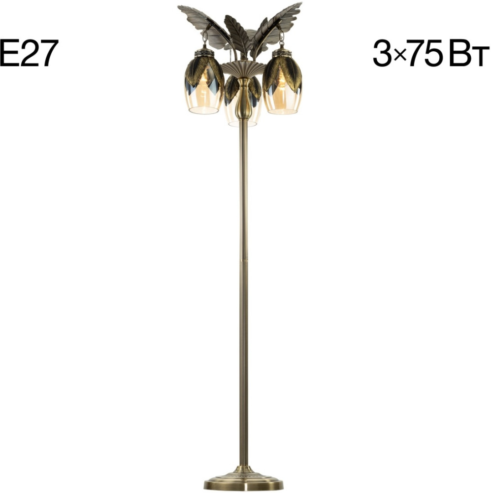 Размеры этого торшера – ширина 460 мм., высота 1800 мм. Он идеально подойдёт для комнаты площадью до 5 квадратных метров. Для создания приятного освещения здесь использовано 3 ламп с цоколем E27 и общей мощностью 225 Вт.