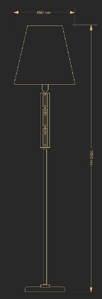 Размеры этого торшера – ширина 450 мм., высота 1850 мм. Он идеально подойдёт для комнаты площадью до 3 квадратных метров. Для создания необходимого освещения здесь использовано 1 ламп с цоколем E27 и общей мощностью 60 Вт.