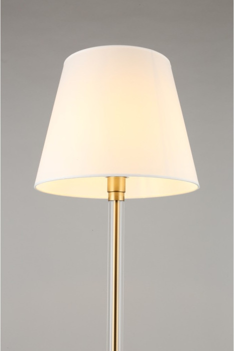 Корпус данной модели исполнен из надёжного металла, стёкшего, а его прозрачный, латунный цвет придаст вашему интерьеру изысканности и теплоты. Плафон выполнен в белом цвете, что придает модели легкости и элегантности.