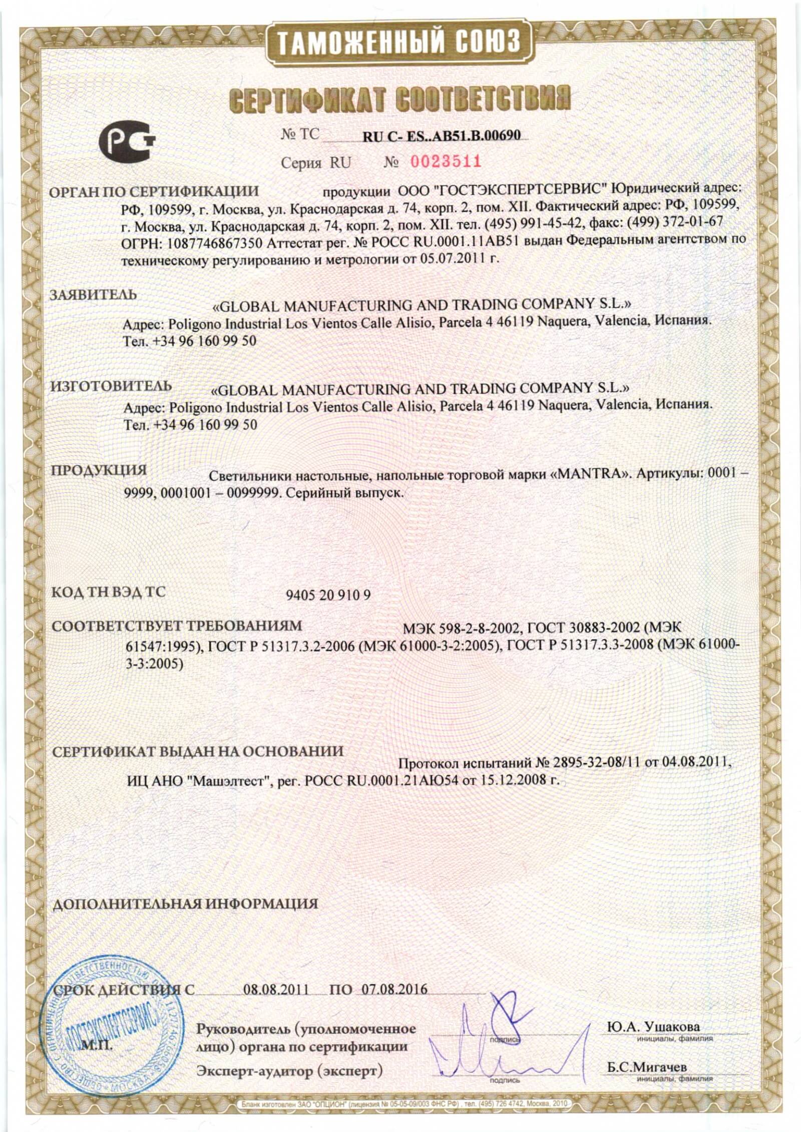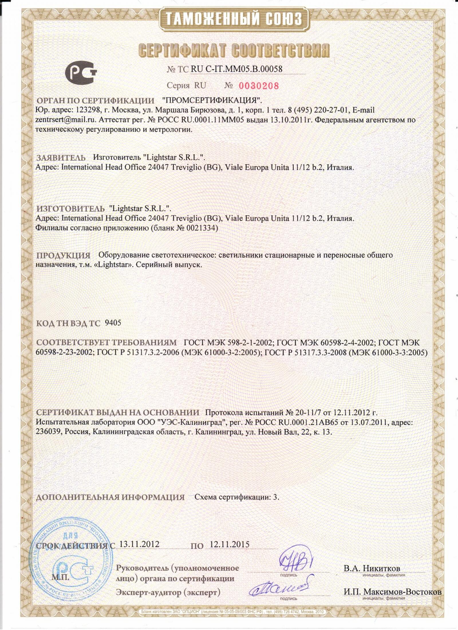 Сертификат Lighstar