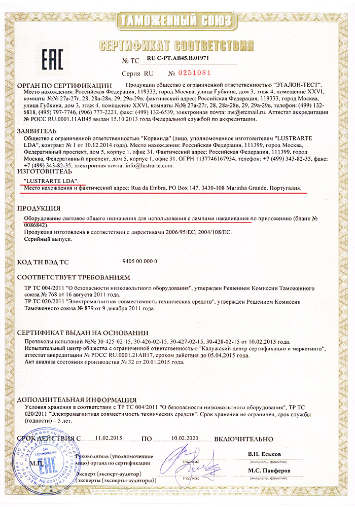 Сертификат Lustrarte