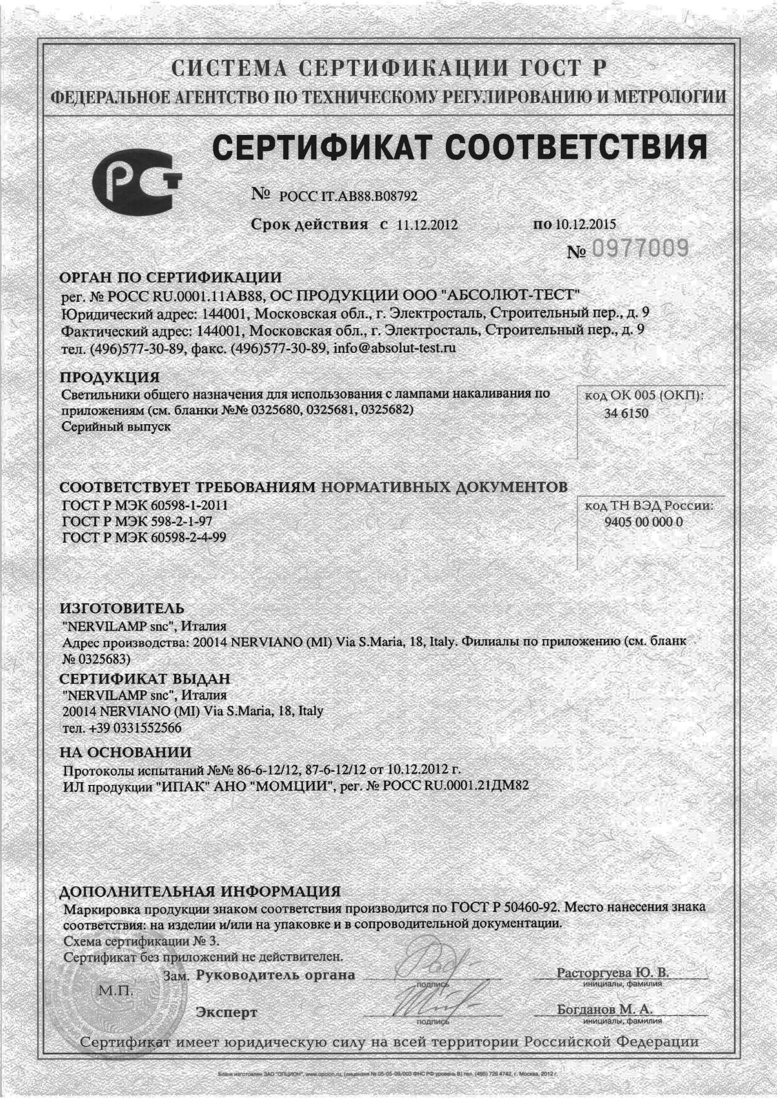 Сертификат Nervilamp